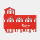 Adicione seu nome nesta design de padrão de tendas de circo vermelho e branco.
