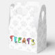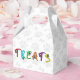 Padrão de impressão de pata de cão e caixas de favorecimento de partes de texto personalizadas. Texto colorido personalizado para comemorações relacionadas a cães.