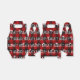 Texto branco NAUGHTY com flocos de neve e bonés de Papai Noel em fundo de xadrez de búfalo vermelho e preto.