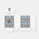 A cute thank you for celebrating with us boy's baby shower box. Blue and brown crocheted bear themed favor or treat box to thank you guests for coming.