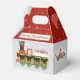Esta caixa de tratamento bonitinha é alegre no Natal. O topo da caixa é vermelho de Natal com flocos de neve. Na parte vermelha da frente está o texto em listras de cana doce que diz "Feliz Natal. Na parte principal da caixa, tanto frente como atrás, está a minha imagem de um comboio de pão de gengibre, cortado em bastões de menta vermelhos e brancos e doces do tipo lozenge verde e branco. em cada extremidade está um aglomerado de varetas de menta-pimenta, doces circulares verdes e brancos e um cupcake de Natal decorado. Seus hóspedes vão adorar essa caixa de tratamento cuidadosa para levar para casa, e você vai adorar o olhar festivo que ela adiciona ao seu decoro de festa.