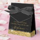 Caixa de adoração elegante do estilo mini tenda com borda amarela de brilho dourado e bordas de confete em fundo preto com obrigado personalizado, perfeito para um aniversário moderno e chic, bat mitzvah, Quinceañera, chá de panela, chá de fraldas ou festa de solteira. Clique em PERSONALIZAR AINDA para alterar as fontes, as cores e o layout para criar uma caixa de favoritos personalizada exclusiva e divertida para os convidados da sua parte.