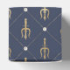 Caixas de favor com um tridente vintage dourado estampado com um padrão de rede de pérolas azul e dourado.