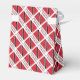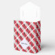 Caixa de favores personalizada em forma de barraca mostrando a bandeira vermelha, branca e negra de Trinidade e Tobago com as palavras TRINIDAD E TOBAGO abaixo. Design é arrumado para um olhar artístico. Um fractal branco de quadrados pretos fornece um lugar para um nome para personalização. Divertido para reuniões familiares, viagem e clubes.