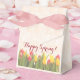 Estas tulipas coloridas com fundo de cóblias fazem uma maravilhosa caixa de presentes com seu texto personalizado!