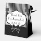 A caixa favorita perfeita do Tuxedo "Obrigado"! Um smoking formal preto com gravata preta de arco. Camisa branca para baixo. Fundo listrado preto e branco. O verso e a frente têm espaço para a sua mensagem personalizada! Perfeito para eventos formais, arrecadadores de fundos e casamentos. Para ver os produtos correspondentes, visite minha loja "The Hungarican Princess" em www.zazzle.com/hungaricanprincess*. Procure na minha categoria de departamento de "Evento Preto" para ver a "Coleção de Tuxedo Preto Formal".