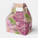 Caixa de hóspedes com rosas roxas floridas. O texto em frente e verso pode ser personalizado para qualquer mensagem ou o texto pode ser removível. O fundo roxo pode ser alterado para qualquer cor.