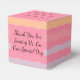 Uma caixa de adivinhação de estribo cor-de-rosa, com talão de coração. A Noiva pode personalizar o texto para coordenar com o dia do seu casamento. Todo texto também é removível. O fundo cor-de-rosa pode ser mudado para a sua própria cor selecionada. Lá atrás há um pequeno lugar para obrigado pessoal de seus convidados, ou adicionar sua foto de noivado.