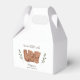 Caixa de chás de fraldas de gêmeos bonitos e rústicos com ilustração de dois ursos bebês. O texto diz "podemos esperar muito!"