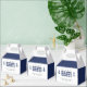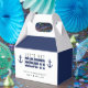 Caixa de favor azul e listrada de branco "vamos fazer safadeza" para uma festa de despedida de solteiro(a). Personalize com o seu próprio texto.
