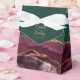 Esta elegante caixa de favores moderna apresenta uma coloração d'água burgundy agate design aparada com brilho dourado. Personalize-o com os nomes da noiva e do noivo em um guião de manuscrito dourado sobre um grande e grande e, junto com a data do casamento abaixo, em um fundo verde esmeralda.