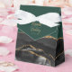 Esta elegante caixa de favores moderna apresenta uma design de agata preta, aparada com brilho dourado. Personalize-o com os nomes dos casais em uma escrita manuscrita dourada sobre um grande e grande e, junto com a data do casamento abaixo, em um fundo verde esmeralda.