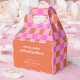 Caixa de Favor de Agradecimento Personalizada com Arte Xadrez Abstrata Rosa Laranja para Chá de Noiva