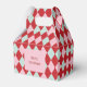 Quer seja uma festa de escritório ou uma festa natalina, estas bonitas e festivas caixas de favores são certamente um sucesso. As caixas são desenhadas com um padrão de estilo, usando diamantes vermelhos, cor-de-rosa e hortelã. Há um patch rosa na frente para sua própria mensagem personalizada. Pressione o botão Personalizar se quiser que a mensagem seja alterada.