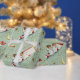 This design features a whimsical, vintage-inspired holiday motif. The pale blue-green background is adorned with scattered golden stars and twinkling flecks. The primary elements are large glittery golden crescent moon and a stylized, red and white striped candy canes that function as a slide. Small angels, which are wearing white, are depicted in two poses: one angel sits on the tip of the crescent moon, and a group of three angels are sitting on the candy cane, creating a playful and nostalgic texture suitable for wrapping paper or fabric.