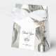 Uma bela caixa de favores de casamento com folhas rústicas de cor aquática de eucalipto, vegetação antiga. Um design elegante ideal para qualquer tema de casamento. Os convites de casamento e outros artigos de papelaria também estão disponíveis.