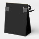 An elegant black and gold wedding favor box. The flap is faux gold foil and it has a black crest with the wedding monogram in it, from the two initials of the bride and groom.