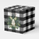 O presente de pacote favorece este feriado com uma Xadrez de Buffalo "Reindeer Festivo". O design de caixa de favores apresenta um verde-de-rena bonito e adorado em um fundo preto e branco de gingham. Itens adicionais de presentes e feriados disponíveis com este design também.