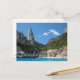 Cartão postal da grande rocha escaladora na praia de Cala Goloritze, no Golfo de Orosei, na ilha Sardenha, no Mar Mediterrâneo, Itália, com o texto: Sardegna, Golfo di Orosei.
