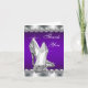 Bela festa de aniversário de calçado roxa e diamante prateado brilhando. Este elegante cartões de agradecimentos de alto salto roxo é facilmente personalizado para o seu evento adicionando detalhes do evento, estilo de fonte, tamanho de fonte e cor e texto. Observe que todos os adesivos, cartões e designs de convite que você encontrará no Zazzle são gráficos impressos sem joias reais, arcos, levantados, gravados, ou peças ou peças adicionadas.
