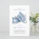 Convide os convidados para o seu evento com este convite personalizável para o bebê brunch. Ele apresenta ilustração aquosa de um adorável chá de fraldas azul. Personalize este convite para chás de fraldas adicionando seus detalhes. Este convite para bebê azul é perfeito para um chá de fraldas Boy.