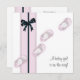 calçados bonito, cor-de-rosa, com rosebudas brancas, fita cor-de-rosa e preta, e convite para chás de bebês arcos. Este adorável convite para chás de fraldas cor-de-rosa e preto é facilmente personalizado para o seu evento, simplesmente escolhendo o botão "Personalizar!" para começar a adicionar os detalhes do seu evento, estilo da fonte, tamanho da fonte e cor e texto. Observe que todos os designs de cartas e convites que você encontrará no Zazzle são gráficos impressos sem joias reais, arcos, levantados, gravados em relevo ou peças ou peças adicionadas.