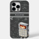 capas de iphone de matemática excelente para crianças. As fórmulas são escritas à mão em branco como se com giz sobre um fundo de cinza e a ilustração tivesse um filho numa fantasia de calculadora. Ilustrada e projetada por Patricia Alvarez.