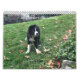 Um grupo bonito de 12 que surpreendem, fotografias originais de um filhote de cachorro de border collie nomeou Bronco todo 12 em um calendário do mês 2017