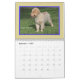 O calendário de parede caracteriza filhotes de cachorro adoráveis do golden retriever, usando todas as fotos originais, trabalhos de arte, e o que os filhotes de cachorro estão dizendo, em suas próprias palavras.