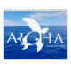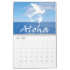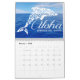 Calendário bonito de Havaí com golfinhos, baleias, tartarugas, surfistas e dançarinos do hula. Havaí é chamado Aloha o estado. Aloha significa olá!, adeus e amor na língua havaiana. A baía de Hanauma está em Havaí perto de Waikiki. Há muitas tartarugas e os peixes tropicais em Hanauma latem.