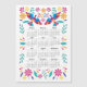 Este design apresenta aves coloridas com vibrantes motivos florais e folhosos.