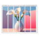 Stay organized and inspired throughout the year with this stunning 2026 wall calendar. Featuring a modern artistic design, it showcases beautiful white Calla Lilies in a sleek vase against a soft, pastel-colored geometric background. The clean lines and soothing color palette make it a perfect addition to any home office, kitchen, or workspace.