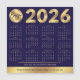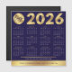 Crie calendários personalizados de 2026 com o logotipo da sua empresa usando este design de calendário moderno com efeito azul marinho e dourado. Ótimo para usar como um presente promocional para clientes e funcionários. Apresentando efeitos dourados falsos sobre um fundo azul escuro, o logotipo da sua empresa e detalhes de contato - estes cartões magnéticos de calendário de 2026 podem atender a qualquer marca corporativa.
