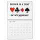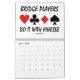 Os jogadores da ponte avid desfrutarão deste calendário com os quatro trajes de cartas junto com uma ponte diferente dizendo a cada mês em 20XX, além de uma ponte bônus dizendo design no cobrir traseiro. A ponte clássica diz que muitas vezes são ouvidos na mesa da ponte num clube ou num torneio de ponte. Palavras e palavras não- palavras do excelente 20XX Classic Bridge Sayings presente no calendário para qualquer ponte séria/jogador de ponte duplicado, independentemente da classificação!