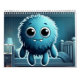 This design features a cute and fluffy blue creature with big round eyes, glowing slightly under a soft night lamp. The creature sits playfully on the edge of a bed, bringing a sense of comfort and whimsy to any room. Perfect for anyone who loves adorable, friendly monster designs, making it an excellent addition to home décor or fun apparel.