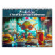 What if aliens came to Earth—not to invade, but to explore, party, and play? This whimsical calendar imagines extraterrestrials diving into human culture with curiosity and style. Each month features a vibrant scene: aliens DJing in neon-lit clubs, skiing down alpine slopes, riding bumper cars at the fair, tasting fast food with delight, sunbathing at the beach, or marveling at wide-eyed frogs that look suspiciously familiar. From carnival chaos to cozy winter fun, these illustrations blend sci-fi charm with everyday joy. Perfect for fans of quirky art, cosmic humor, and intergalactic imagination.