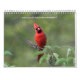 Os pássaros representados realizam-se por ordem dos meses: O titmouse adornado, cardeal fêmea, pisco de peito vermelho americano, pardal de canção, Catbird cinzento, cardeal masculino, Goldfinch americano fêmea, pica-pau Downy, pardal de casa, Preto-tampou o chickadee, o pica-pau-cinzento Branco-breasted, e o homem americano do Goldfinch.