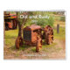 Calendário antigo e Rusty 2026: com equipamento de fazenda, equipamento mineiro, diferentes tipos de motores, carrinhos, trator e carruagem ferroviária.