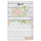 Linda coleção floral com buquês e pulverizações de flores de cor d'água desenhadas a mão pastel. Cada página do mês de calendário exibe uma mistura diferente de folhagem e flores, incluindo rosas, hífenes, hífenes, anêmonas e poinsettias, em um fundo de madeira branca rústica, com coordenação de páginas de grade personalizadas.