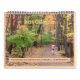 Um calendário de 2025 com o tema "A beleza do outono", com a beleza de uma floresta pintada pela natureza durante o outono.