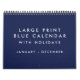 São 12 meses (janeiro - dezembro) grande calendário azul impressão vazio com feriados (eventos e feriados nos Estados Unidos), fio azul e texto personalizável na primeira página.