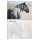 Calendário de Cavalo Selvagem com fotografias da advogada Carol J. Caminhante do icônico garanhão selvagem Blue Zeus. Blue Zeus viveu no Complexo do Deserto Vermelho de Wyoming com sua família, e foi arredondado em outubro de 2020 e foi resgatado em junho de 2021 por Clare Staples do Santuário do Skydog e agora está vivendo no Santuário.