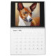 Calendário com doze imagens de cães Basenji em vários estados de brincadeira e repouso.