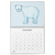 Um calendário divertido e colorido com fotos de animação de animais. Design baseado em pinturas aquosas de animais de estimação e de fauna selvagem. Os animais incluem: coelhos, cobaias, leão, urso polar e outros.