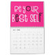 Boa vibração calendário com uma mensagem positiva para todos os meses do ano em grande tipografia funky. Os cobrir frontais e traseiros têm um padrão diagonal de cores brilhantes do arco-íris, incluindo lilás, amarelo, branco e coral, com letras cor-de-rosa-quente com um toque de fundo preto e dentro, cor-de-rosa-quente, com tipografia branca com realces rosa-quente e pretos. Você pode alterar o dentro cor de fundo rosa se desejar, por meio da opção Clique para personalizar mais.