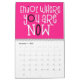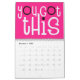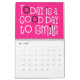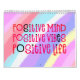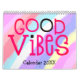 Boa vibração calendário com uma mensagem positiva para todos os meses do ano em grande tipografia funky. Os cobrir frontais e traseiros têm um padrão diagonal de cores brilhantes do arco-íris, incluindo lilás, amarelo, branco e coral, com letras cor-de-rosa-quente com um toque de fundo preto e dentro, cor-de-rosa-quente, com tipografia branca com realces rosa-quente e pretos. Você pode alterar o dentro cor de fundo rosa se desejar, por meio da opção Clique para personalizar mais.