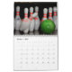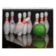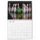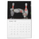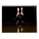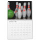 Um calendário que apresenta fotos de pinos de boliche.