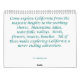 Come explora Califórnia das alturas majestosas às costas reconfortantes. Montanha, lagos, cachoeiras, vales. Pássaros, flores, insetos, praias. Toda a estes faz a Califórnia de exploração uma aventura nunca de término. Este calendário inclui fotos do parque nacional de sequóia, Piedras Blancas, vigia máxima da mula na floresta nacional da sequóia, nas quedas de Tokopah, no Lake Tahoe e no mais.