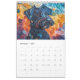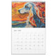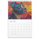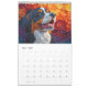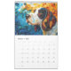 Este calendário apresenta ilustrações coloridas de diferentes raças de cães no estilo de coloração de papel.