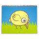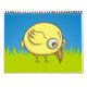 Um desenho animado de pássaros amarelo giro e engraçado sobre a grama e fundo do céu.